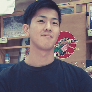 大学4年生の時、アメリカ横断の旅で訪れたカリフォルニア州モントレーのギャラリーで偶然、祖父栄二氏が製作した大漁旗と出会い、それに運命を感じ、家業を継ぐことを決意。